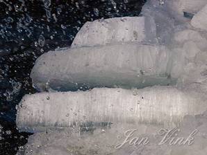Kruiend ijs, en opspattend water, langs de IJsselmeerdijk bij Andijk