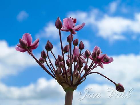 De vele roze bloempjes in het scherm van de zwanenbloem zijn een plaatje om te zien . De bloemen bloeien niet tegelijk, zodat er langere tijd te genieten valt van één enkele bloeiwijze. De moerasplant is een statige verschijning in ons waterrijke land. Vele sloten en moerassen huisvesten de zwanenbloem.